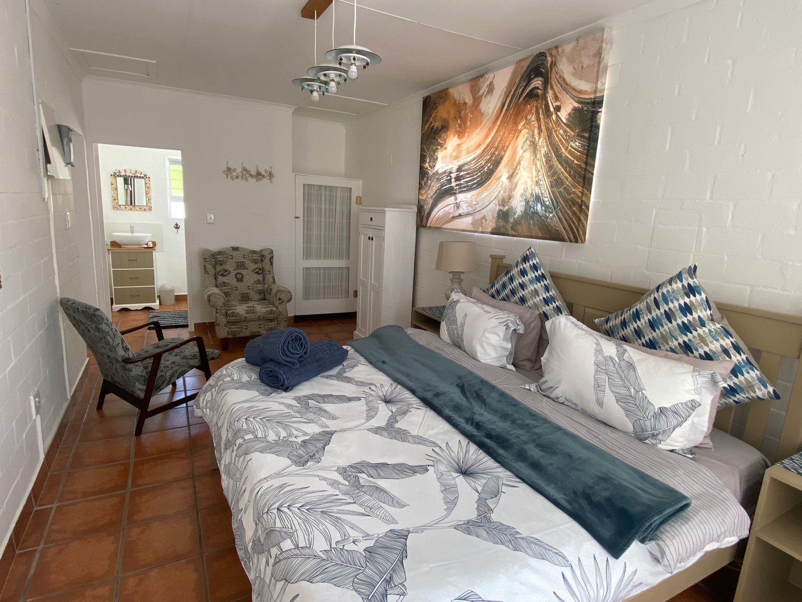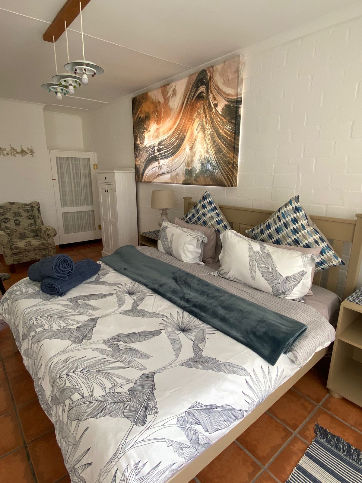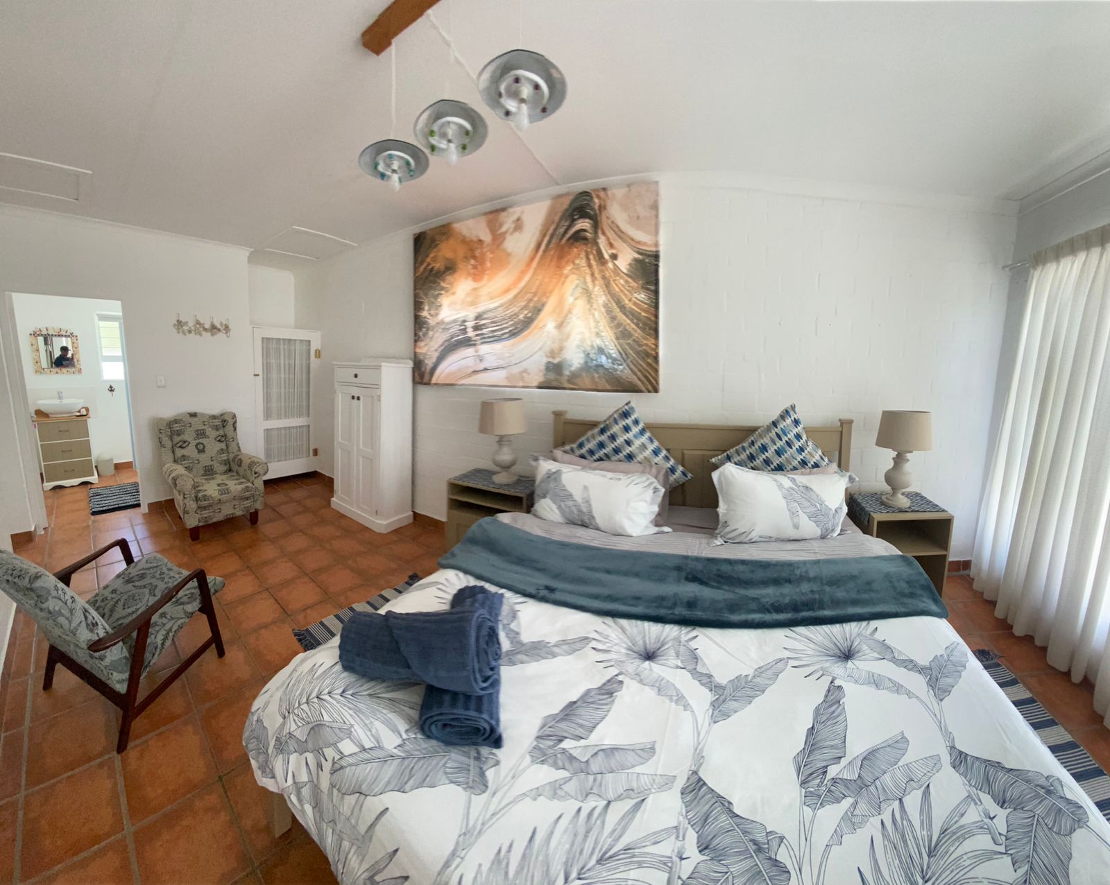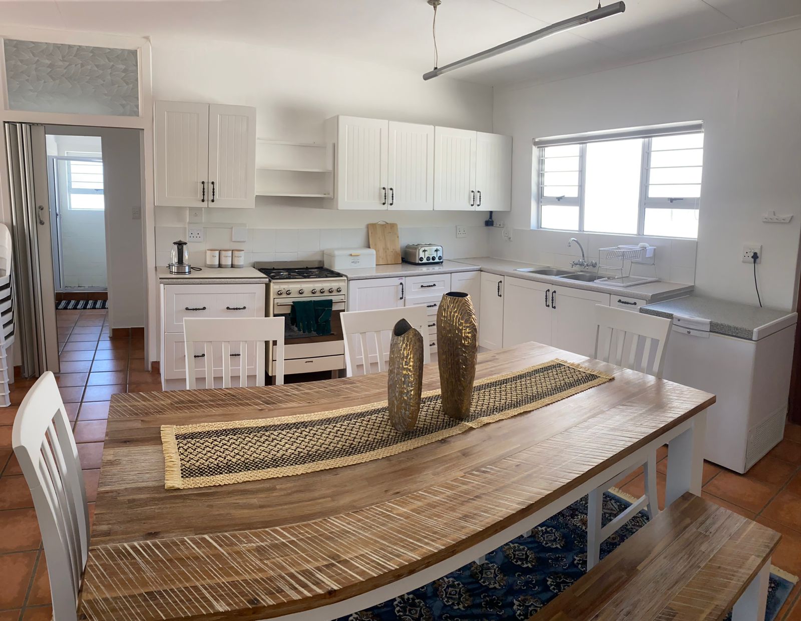 With three cozy bedrooms—a master with a king bed, a second with a queen, and a third with a double bed—there’s room for everyone to feel comfortable and at ease. If two guests prefer not to share a bed, the lounge features a couch that can serve as a single bed, adding extra flexibility. The home also includes two modern bathrooms with convenient shower facilities, making it easy for everyone to refresh after a day at the beach or exploring nearby attractions.